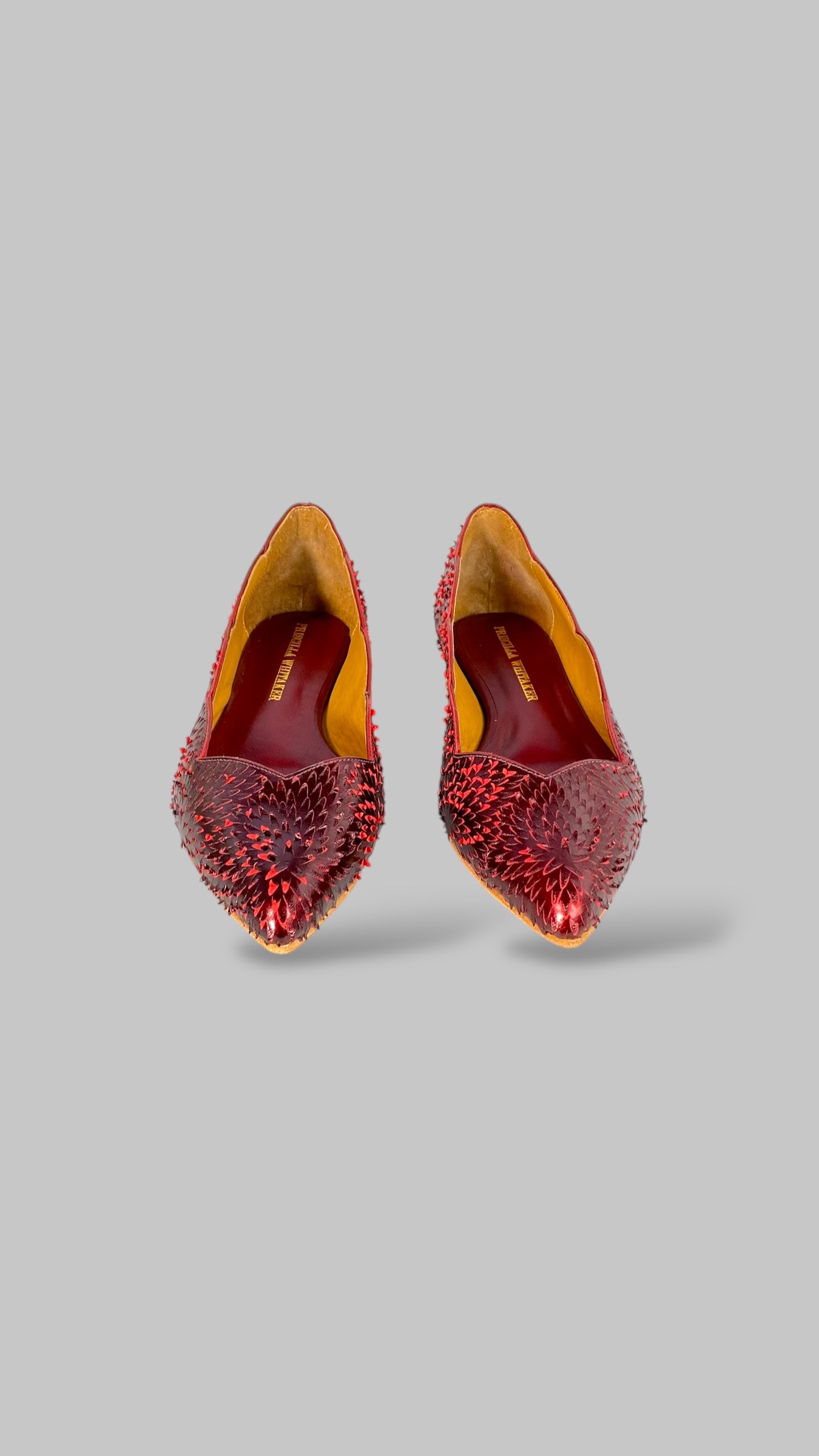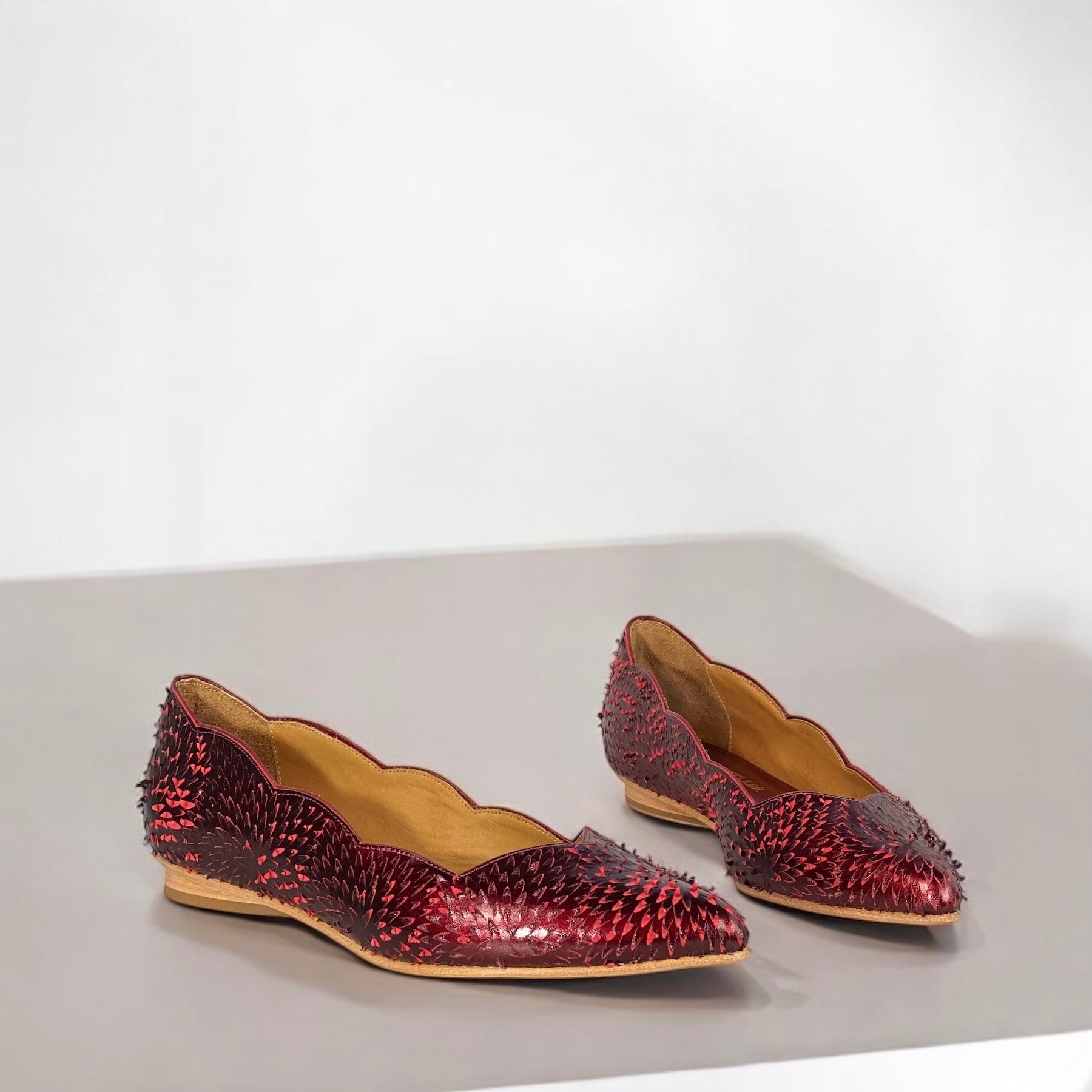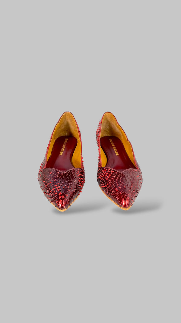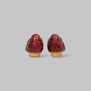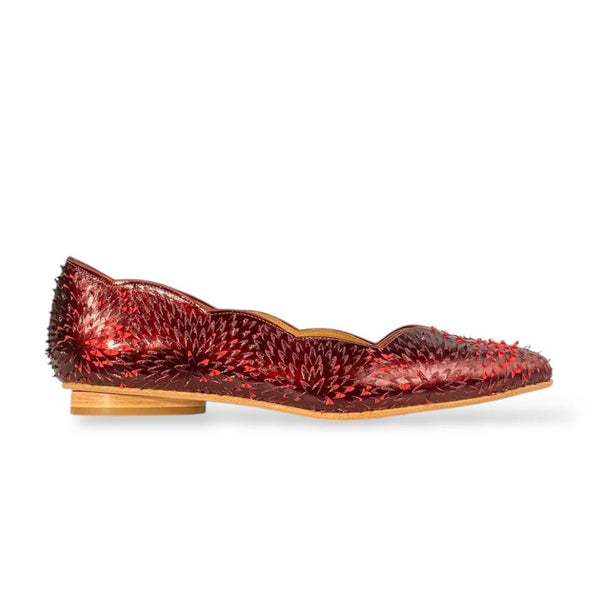 Com textura holográfica em vermelho rubi e recortes ondulados que esculpem o pé, essa sapatilha foi feita para brilhar — sem esforço.