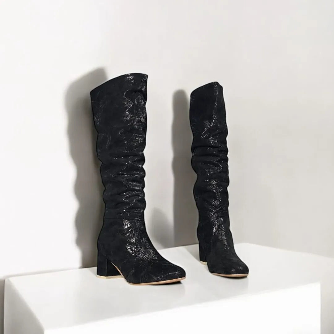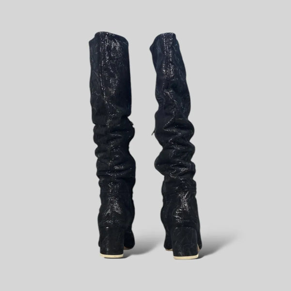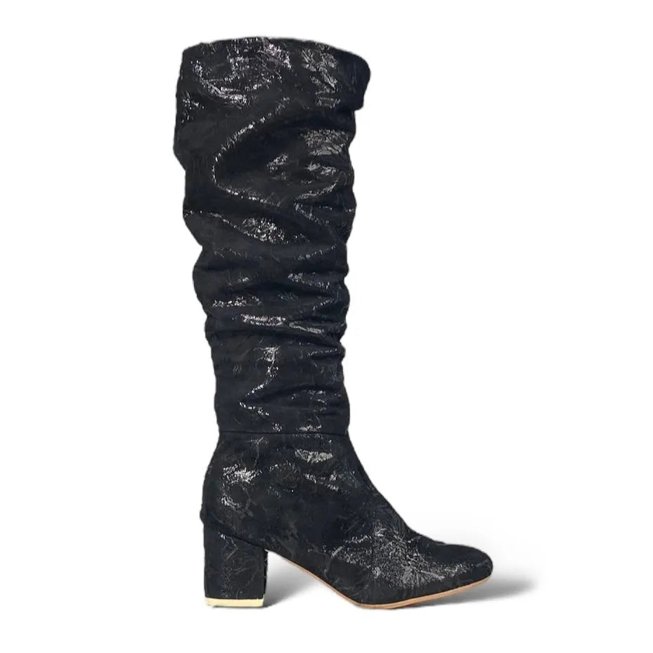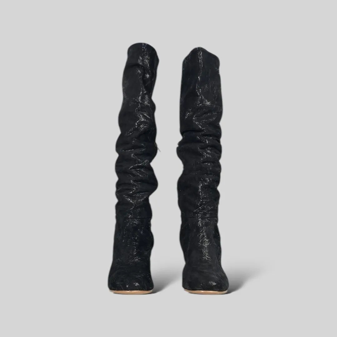 Liberte sua criatividade com esta bota longa em couro, uma bota que se adapta ao seu estilo: com seu design versátil e maleável, esta bota oferece a liberdade de modelá-la da forma que desejar.