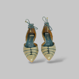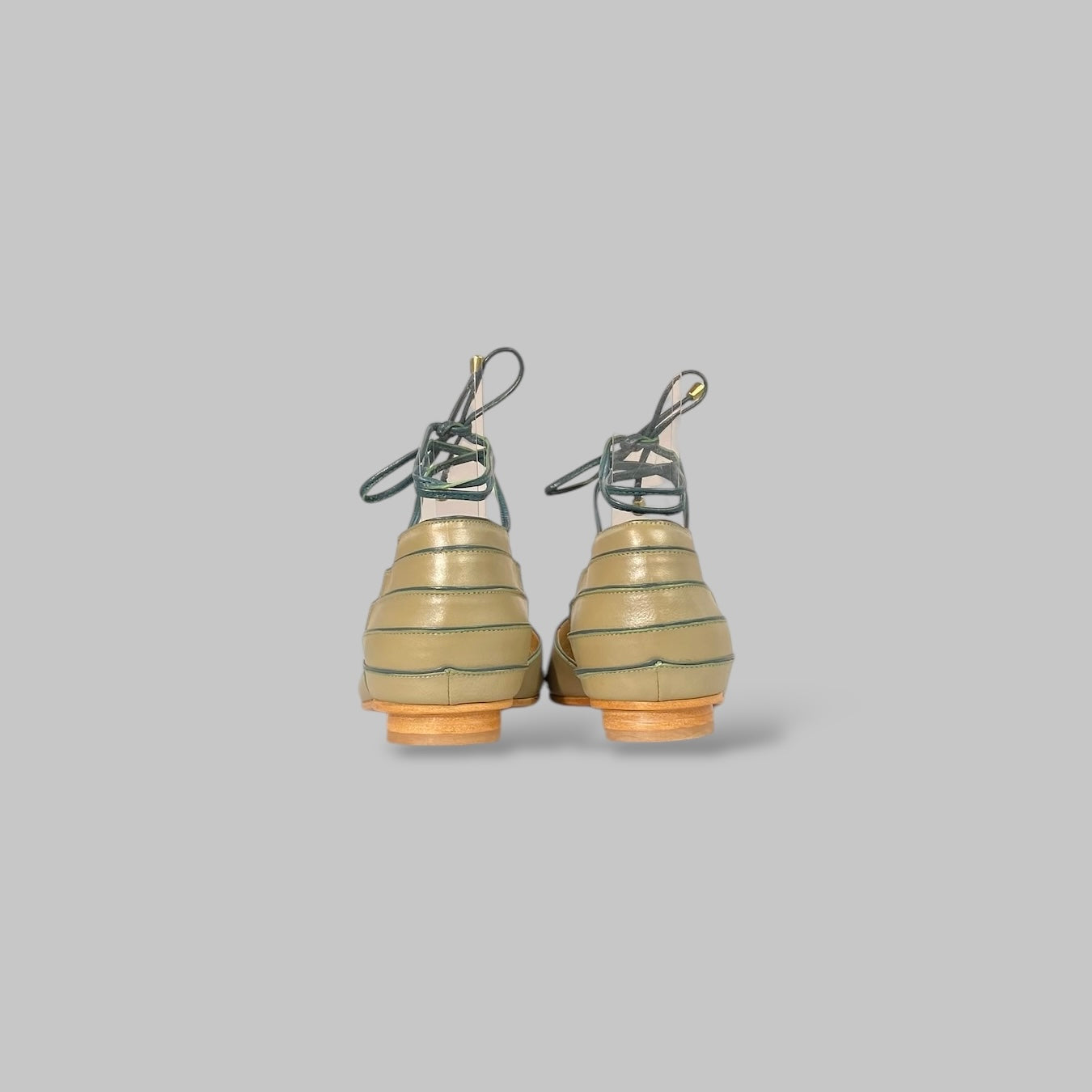 A Camille Verde Oliva é para quem entende que elegância verdadeira está nos detalhes que ninguém mais tem. Cada tira é modelada uma a uma, manualmente, criando esse efeito de fitas que abraçam o pé com leveza — um trabalho que só o artesanal consegue entregar.