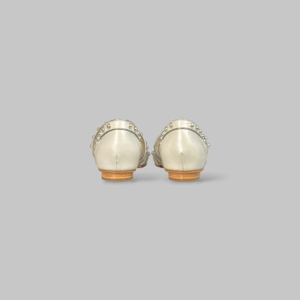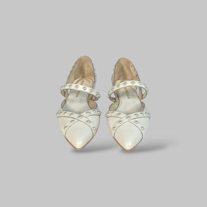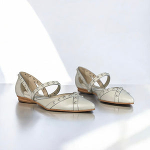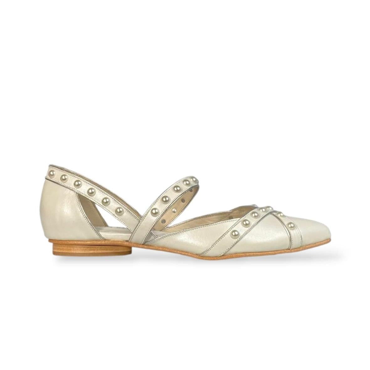 Sapatilha Estela Branco Perolado — delicadeza, brilho suave e acabamento artesanal impecável