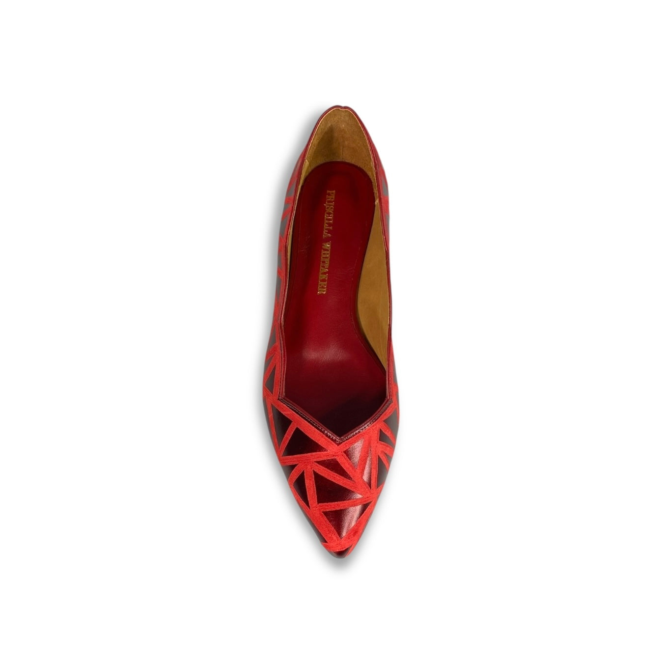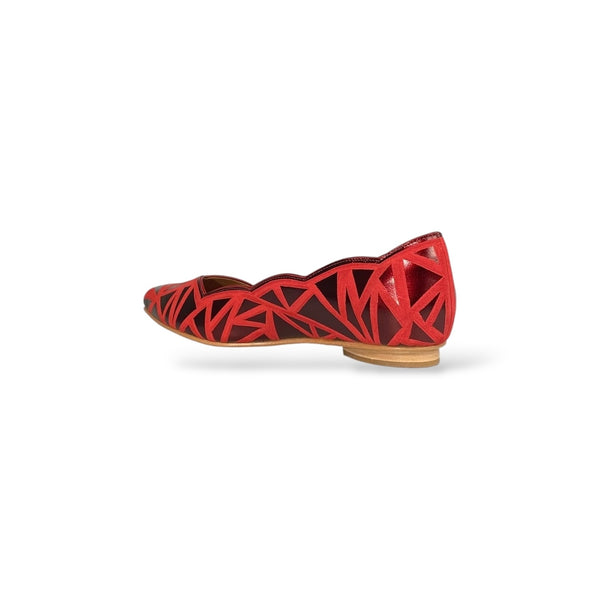 A sapatilha Mira se destaca pelo design moderno e ousado, marcada por recortes geométricos que criam um efeito visual único e artístico. O acabamento vazado revela delicadeza e ao mesmo tempo imprime personalidade, valorizando o trabalho manual e o cuidado nos detalhes. O bico levemente alongado e a borda ondulada completam a composição com moda, tornando o modelo perfeito para quem busca um toque contemporâneo sem abrir a mão do conforto.